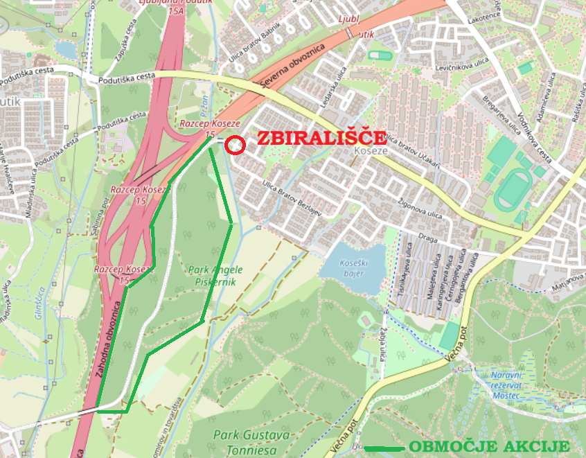 Obveščamo vas, da zaradi zelo slabe vremenske napovedi prestavljamo za četrtek, 26. marca 2026 napovedano čistilno akcijo okoli Koseškega bajerja in v Koseškem borštu, ter v gozdu med Koseškim bajerjem, Večno potjo, Cesto na Brdo in potokom Mostec.